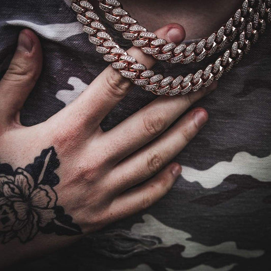 12mm Cuban Bracelets Diamond Simulated Rose Gold Color