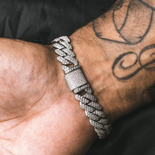 12mm Cuban Link Bracelets - White Gold Color