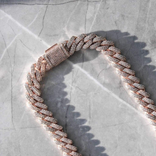 12mm Diamd Prong Cuban Chain Rose Gold Color